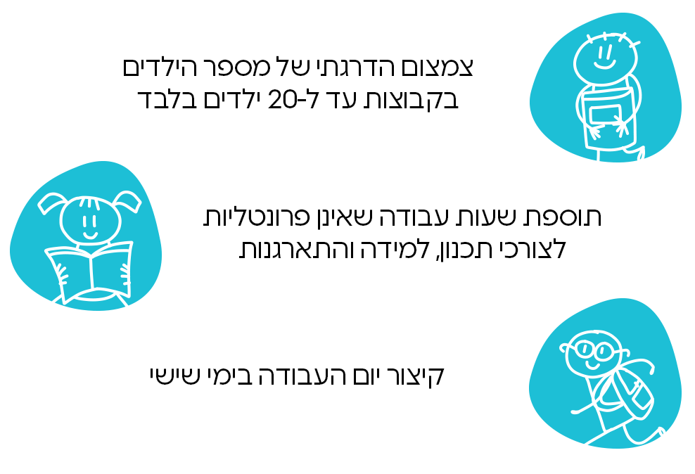 בניית הצעת חוק חדשה לשיפור החינוך לגיל הרך, תוך שינוי מהותי ויסודי באופן העבודה של הגננות בישראל. בין ההצעות שכבר עלו במסגרת התהליך: